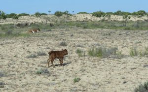 I was left alone with a horse and a calf in the middle of miles of dry, hilly terrain, much the same as you would see in an old western movie. I was missing the cigar in my mouth and the poncho at this moment—a little bit of spaghetti western movie trivia for you. I was thankful that my horse was a mare and that I too was female…don’t know if that made a difference to the calf, but somehow, I had to convince this calf to follow me back to the ranch because I didn’t want to have to drag the poor calf with a rope or something back to the ranch. He was already so frightened and sad because his mother had abandoned him.